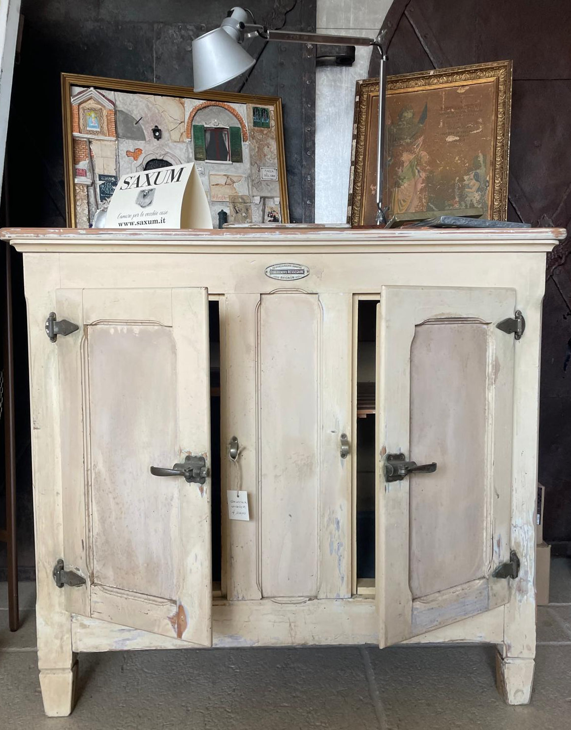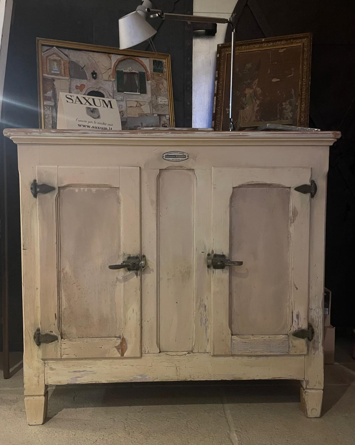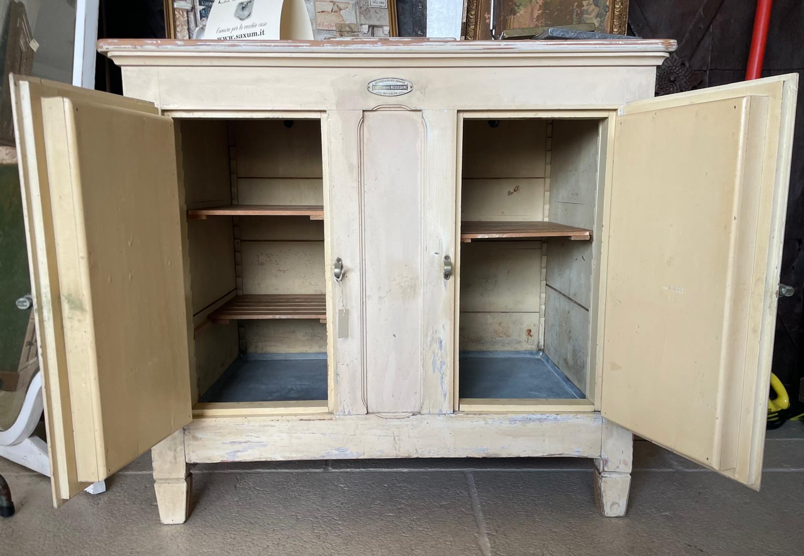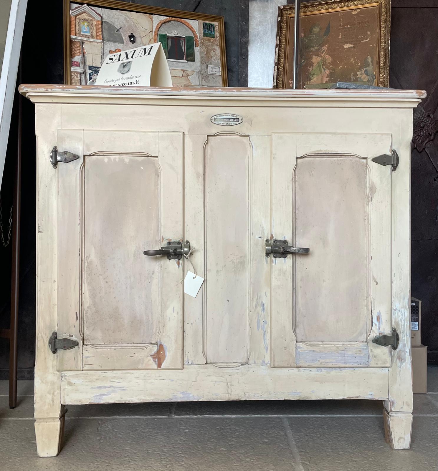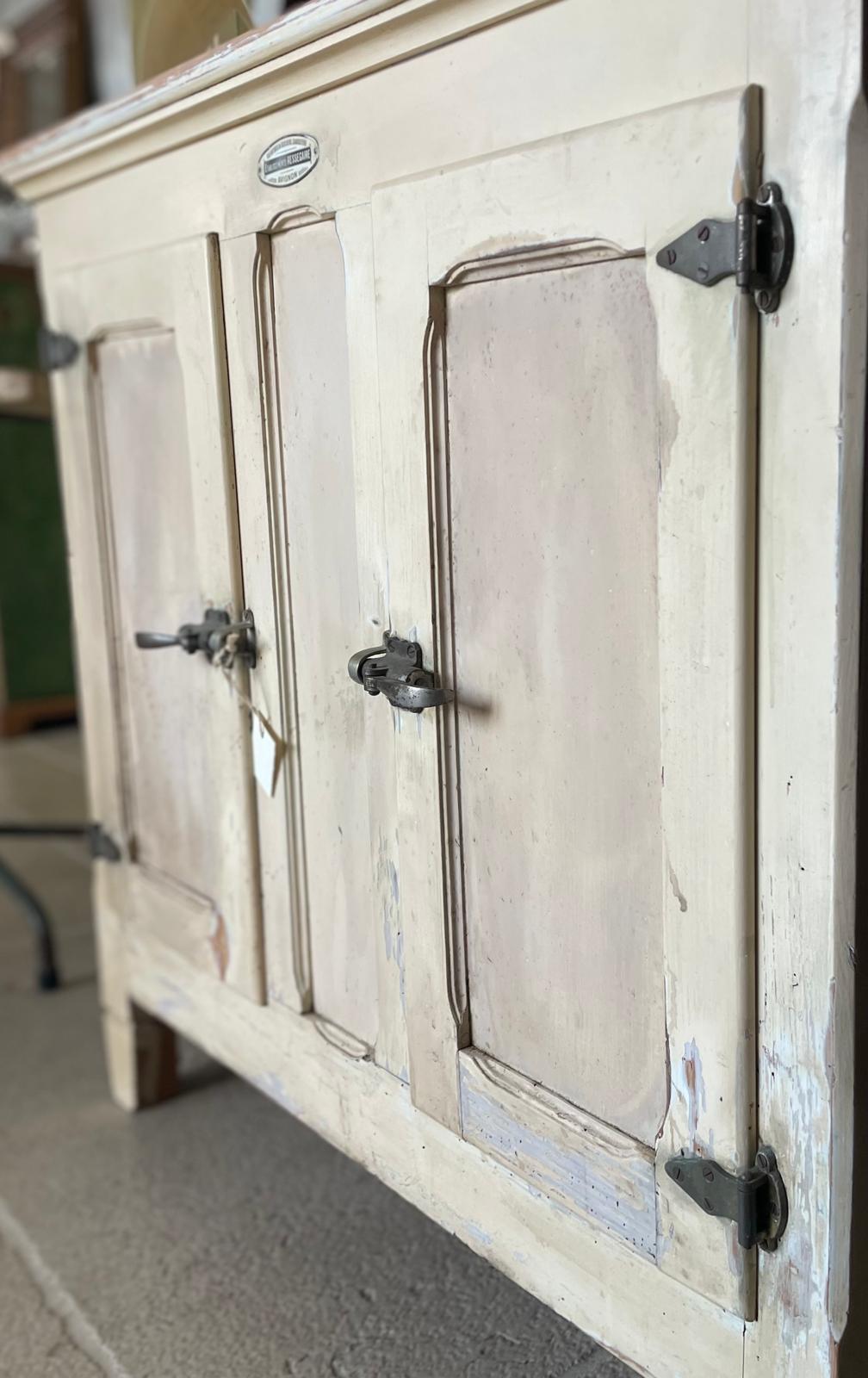 Ghiacciaia antica originale, recuperata e riconvertita a credenza, manifattura francese.